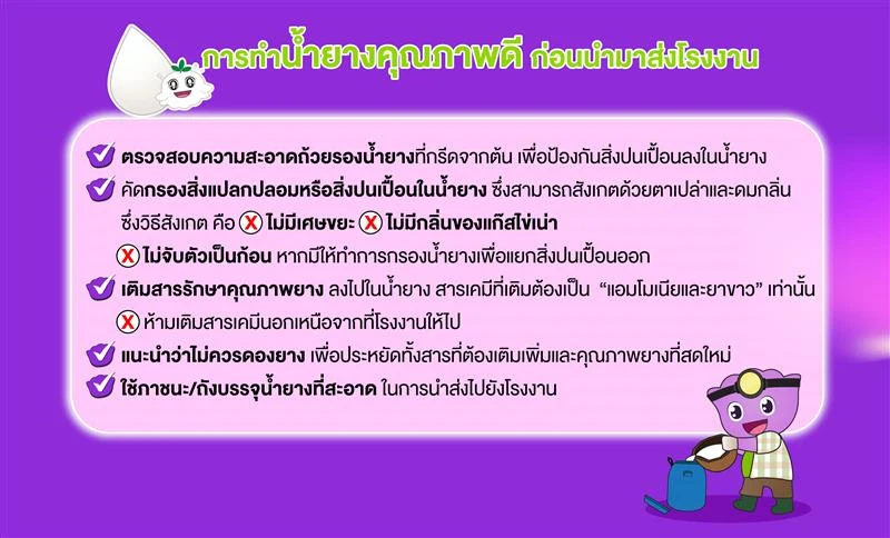 - ไม่ใส่สิ่งปนเปื้อนลงในน้ำยาง