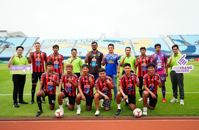 Mr. Chatree Hnukhiew, Factory Manager of Nam Hua Rubber Co., Ltd. (a member of Sri Trang Group) (standing 4th from left), and Mr. Thipat Chaikeeree, Production Factory Manager of Sri Trang Gloves (Thailand) Public Company Limited (standing 4th from right), jointly announced the continued partnership with the "Samila Mermaid" as principal sponsors of Songkhla FC for the fourth consecutive year. This collaboration aligns with the Group’s vision to foster community and social development through the support of sports activities on an international stage, aiming to inspire the younger generation in the region.