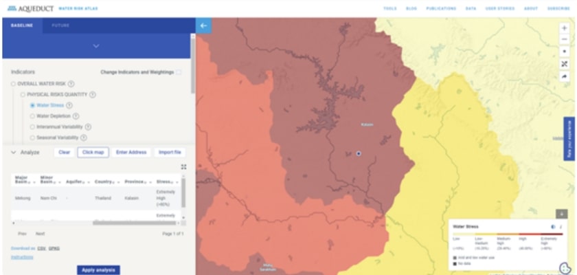 ตัวอย่างการใช้เครื่องมือ Aqueduct Water Risk Atlas ประเมินความเสี่ยงด้านทรัพยากรน้ำ โรงงานแท่งสาขากาฬสินธุ์