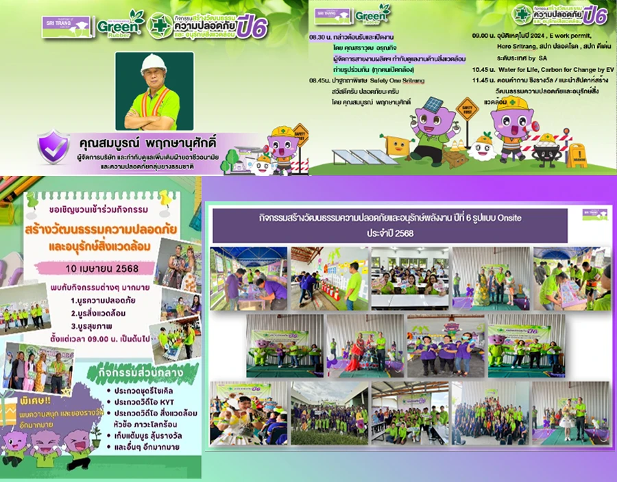 บริษัทฯ ยังได้จัดกิจกรรมส่งเสริมด้านความปลอดภัย และมีการสื่อสารให้พนักงานทุกระดับรับทราบ เช่น การรายงานพฤติกรรมด้านความปลอดภัย BBS Observation card ผ่าน RCS Application เพื่อรายงานพฤติกรรมเสี่ยงหรือพฤติกรรมปลอดภัยที่พบ การตอบคำถามด้านความปลอดภัยประจำเดือน กิจกรรม 5ส, KAIZEN, QCC, KYT และ Safety Talk เป็นต้น โดยบริษัทฯ ได้จัดกิจกรรมสร้างวัฒนธรรมความปลอดภัยและอนุรักษ์สิ่งแวดล้อมต่อเนื่องเป็นปีที่ 6 ในรูปแบบออนไลน์ เมื่อวันที่ 27 มีนาคม 2568 พร้อมกันทุกโรงงานสาขา และได้กำหนดให้มีการจัดกิจกรรมภายในโรงงานสาขา ระหว่างวันที่ 1 เมษายน - 15 พฤษภาคม 2568 เพื่อสร้างการรับรู้และเน้นย้ำเรื่องความปลอดภัยในการทำงานให้กับพนักงานทุกคน ซึ่งเป็นการส่งเสริมการสร้างวัฒนธรรมความปลอดภัยในองค์กรที่บริษัทฯ ดำเนินการมาอย่างต่อเนื่อง